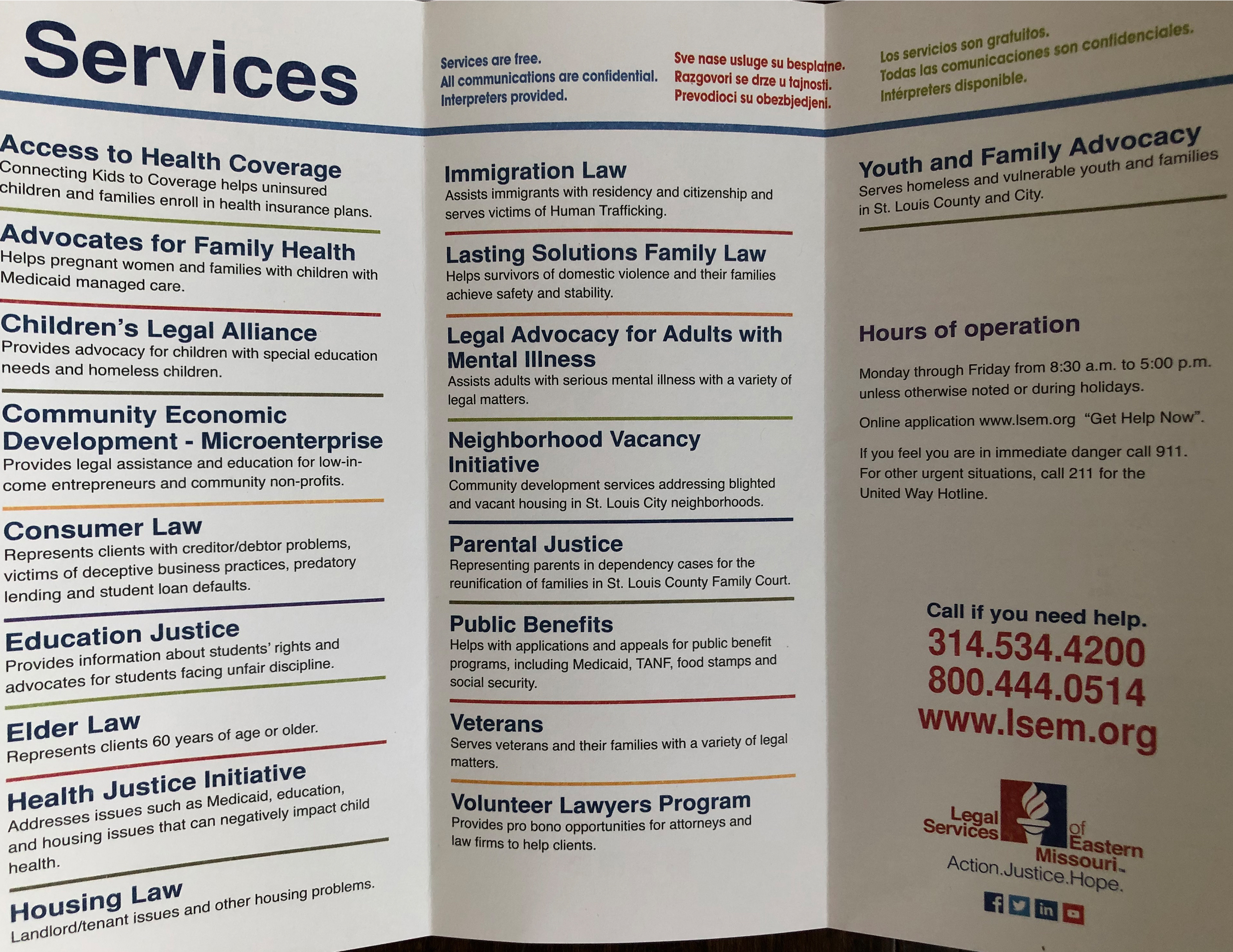 - If you have a civil legal need, they are available to provide services including: eviction defense, represent people against judgement creditors, orders of protection, foreclosure defense, helping people access the public safety net, a robust public benefits department